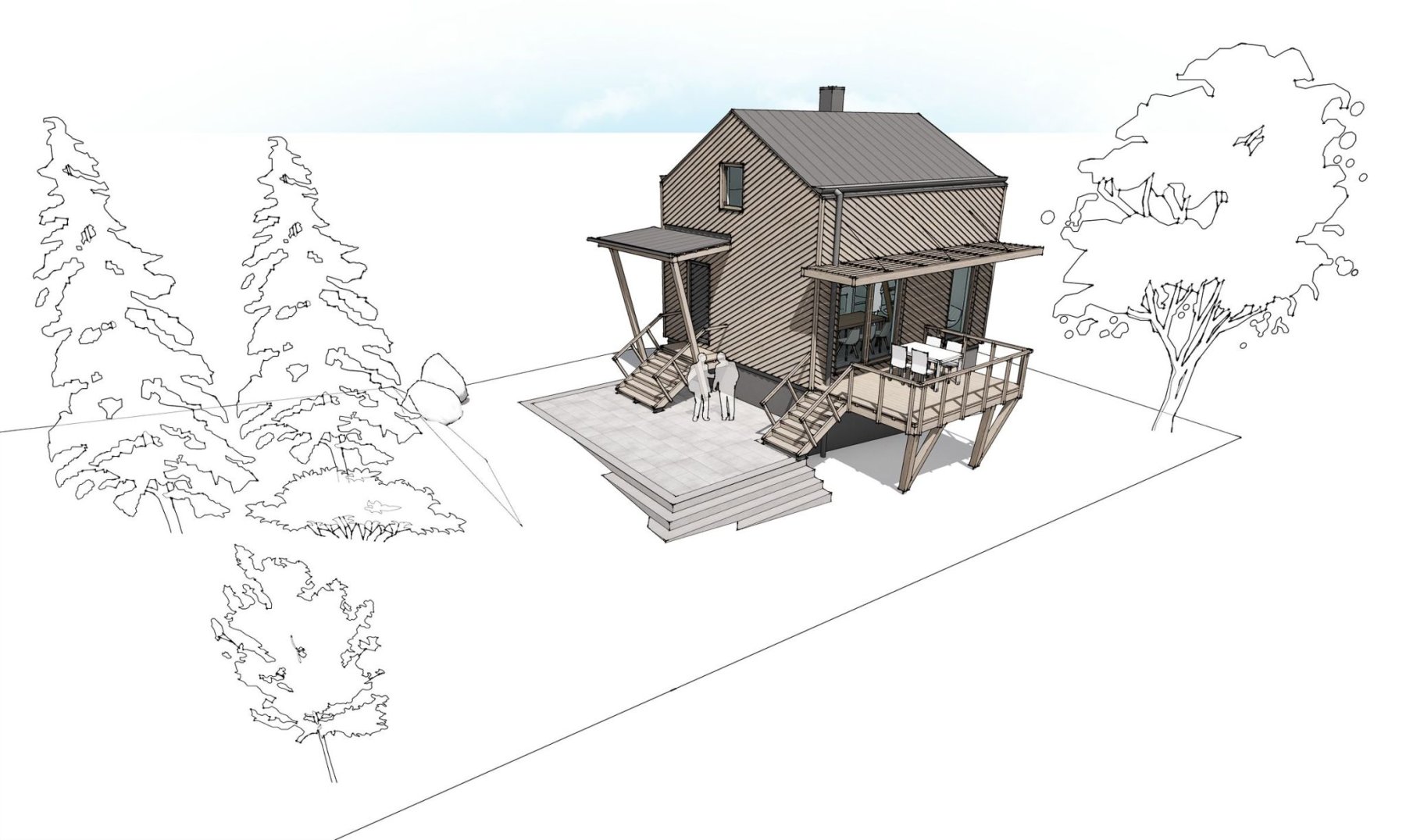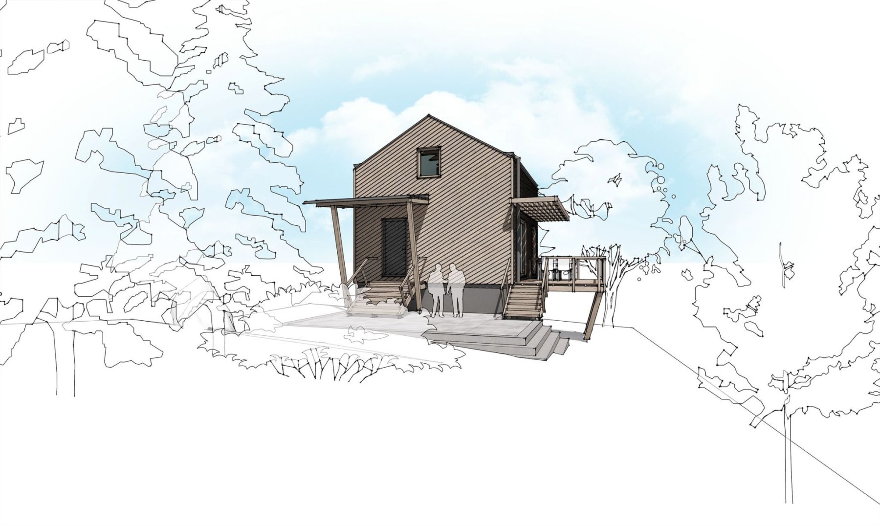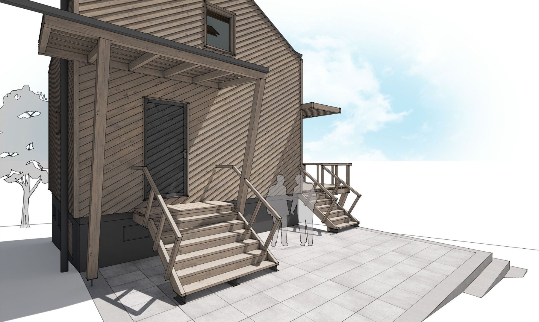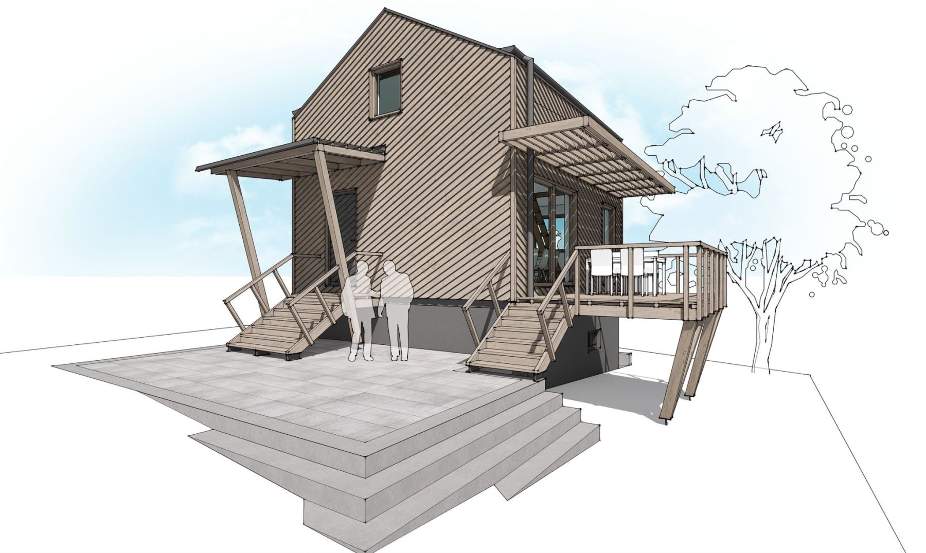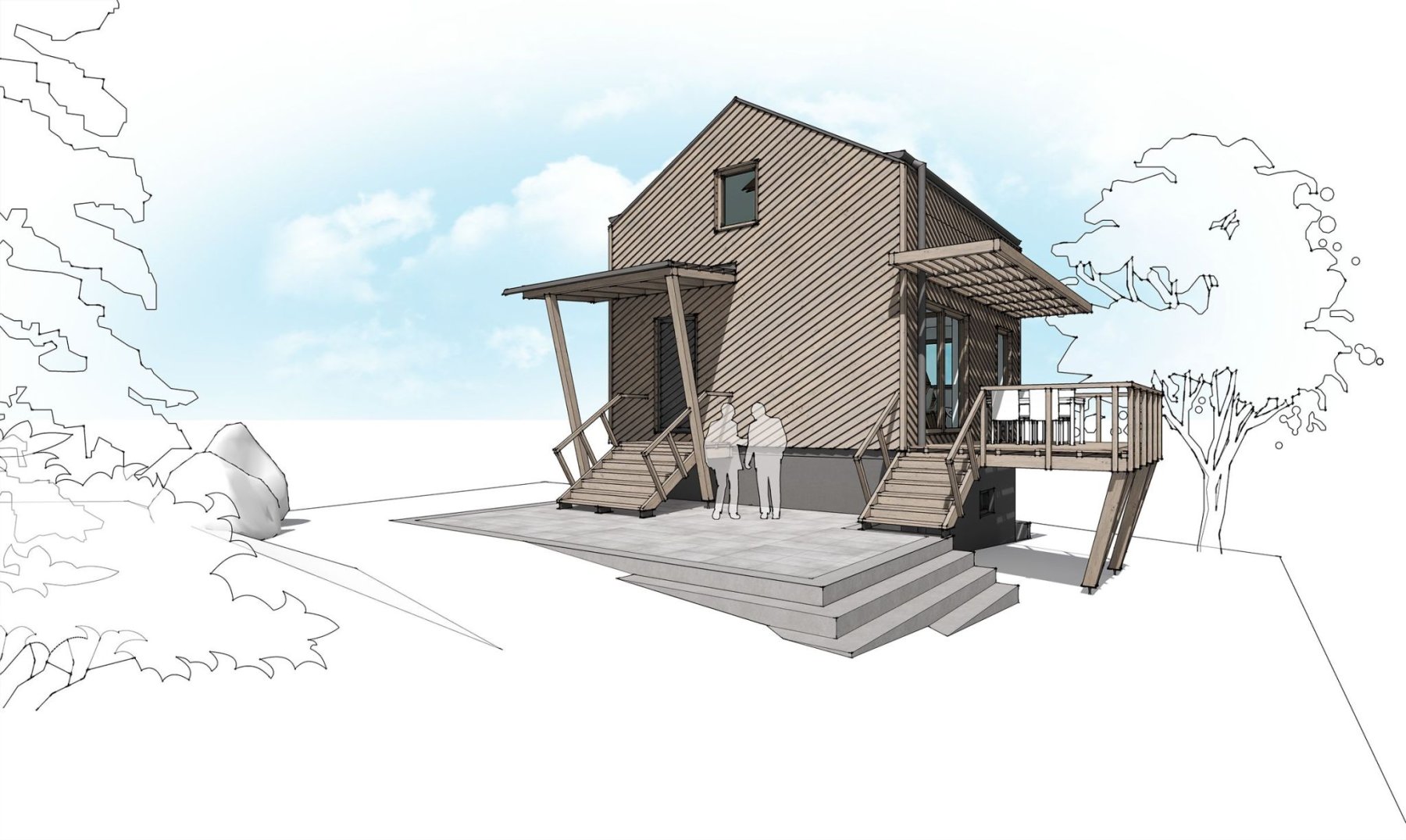 Zadáním bylo zrekonstruovat chatu nacházející se v chatové osadě poblíž Berouna. Měla odpovídat současným trendům a požadavkům na užívání. Vznikl tak návrh originální dřevostavby na stávajícím zděném základu. Jejím osobitým prvkem je dřevěná fasáda z nakloněných prken. Ta vytváří hru světla a stínu a působí tak skoro jako grafický prvek.