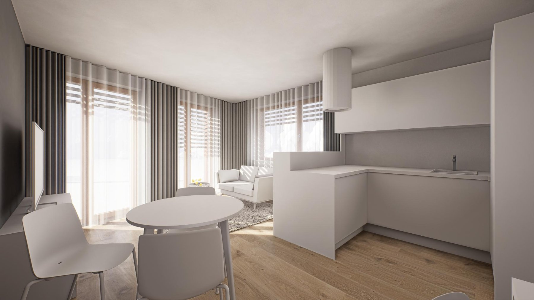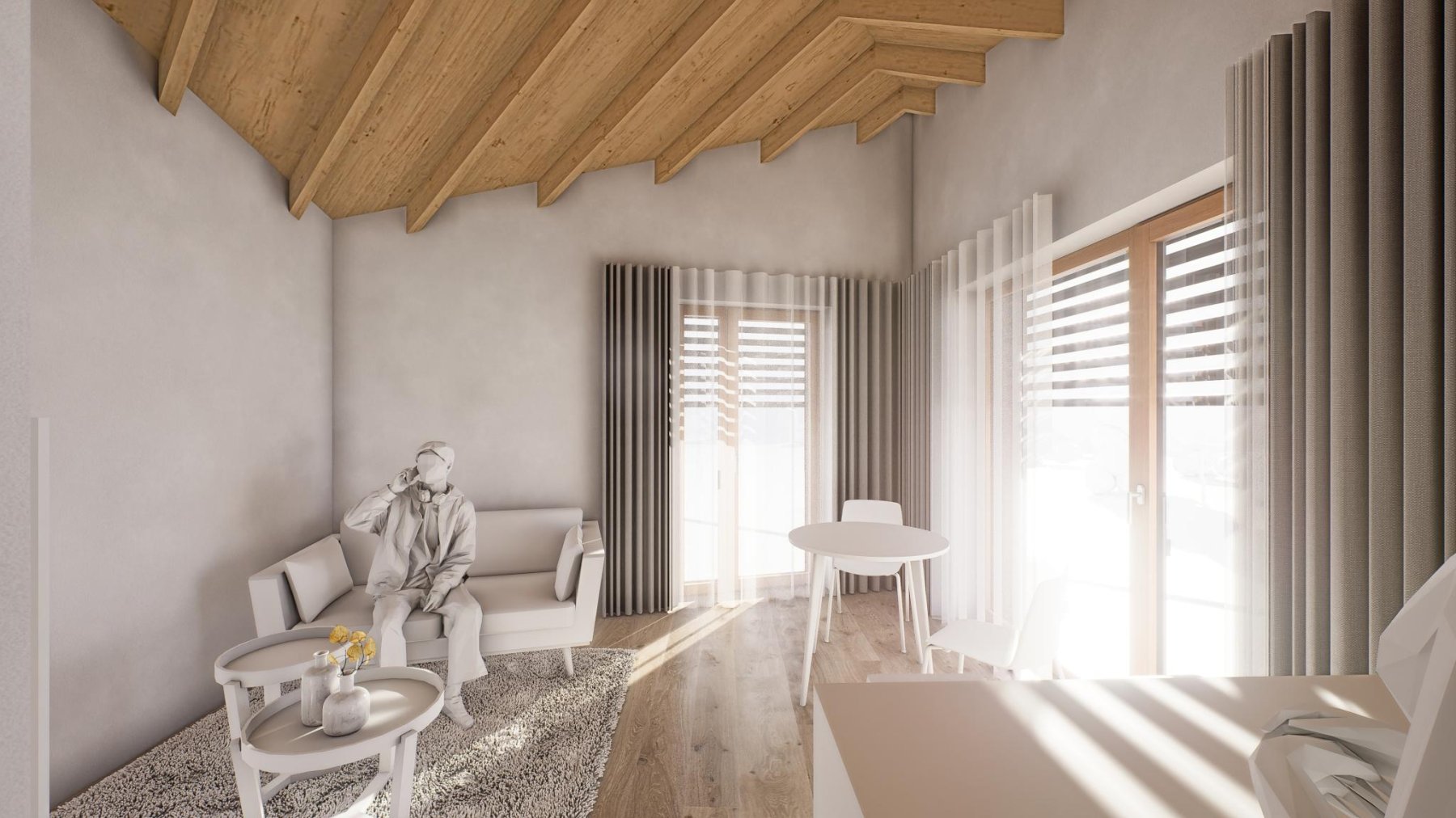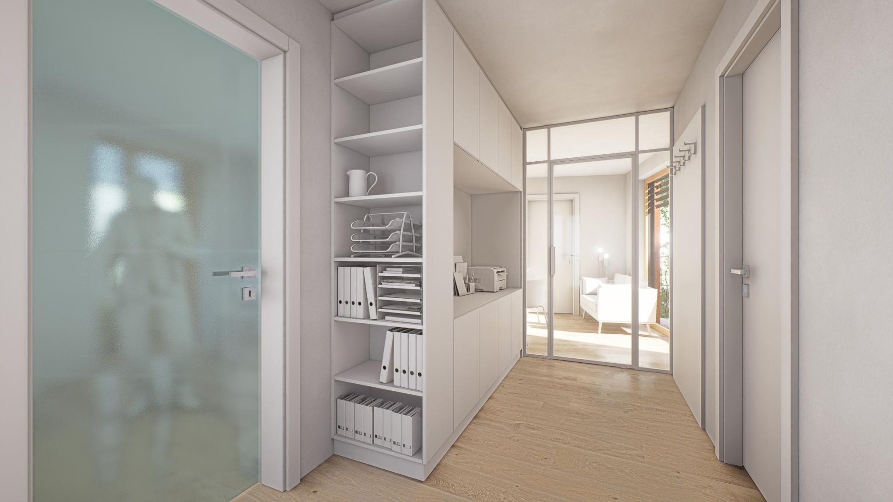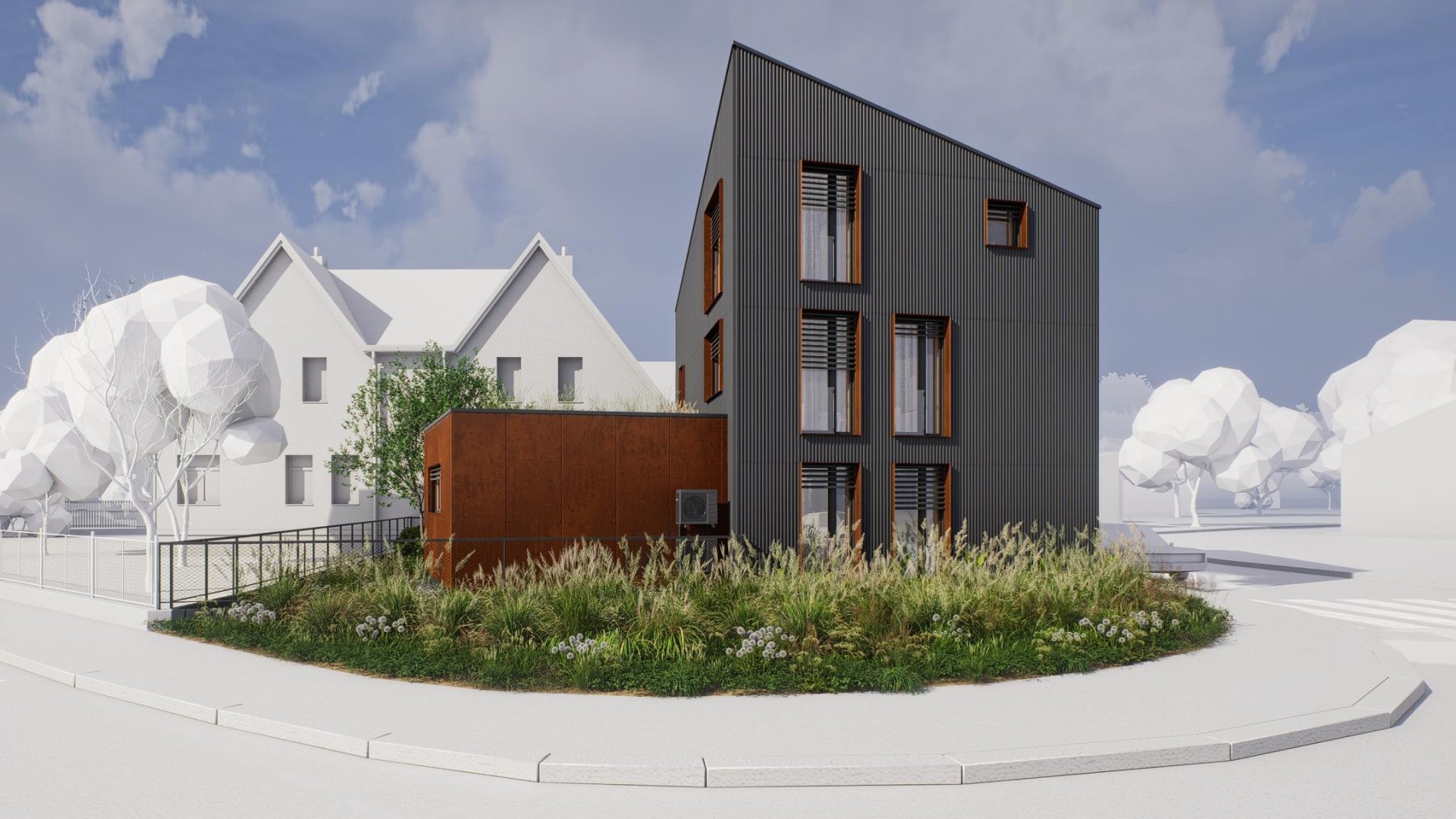 Tento dům měl poskytovat nejen bydlení pro dvě rodiny, ale i prostory určené pro projekční kancelář. Ve spolupráci s renterior.cz tak vznikl návrh obytného domu o třech podlažích. Horní dvě patra slouží jako obytná, v každém je jedna bytová jednotka, a přízemí je využito převážně pro účely kanceláře.