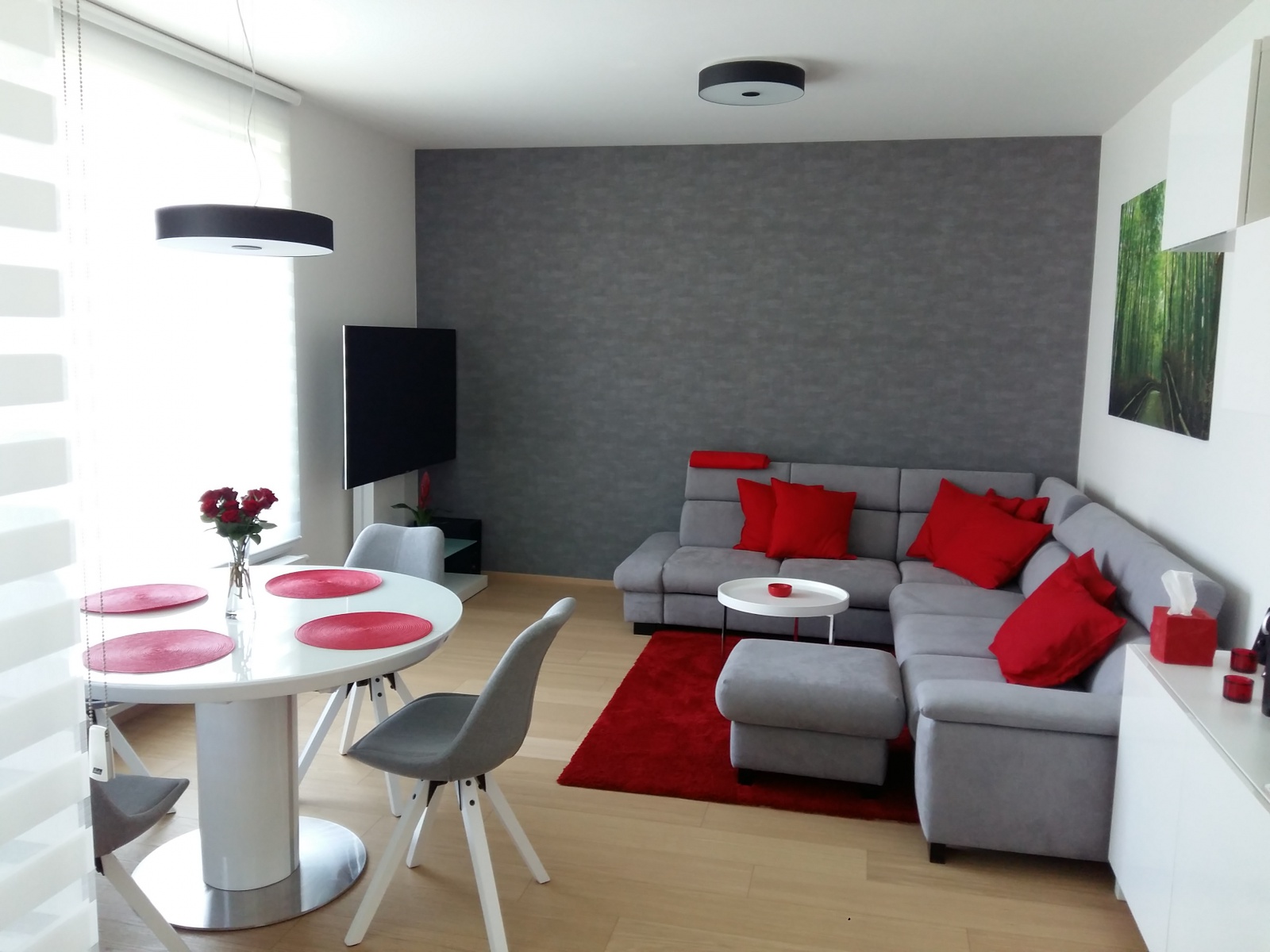 Obývací pokoj s kuchyňským koutem Rohová rozkládací sedací souprava 20170818_122118.jpg 20170818_122224.jpg 20170818_122305.jpg MODERNÍ OBÝVACÍ PROSTOR Autor: Denisa Vanek - návrhy podle FENG - SHUI Datum realizace: 0
