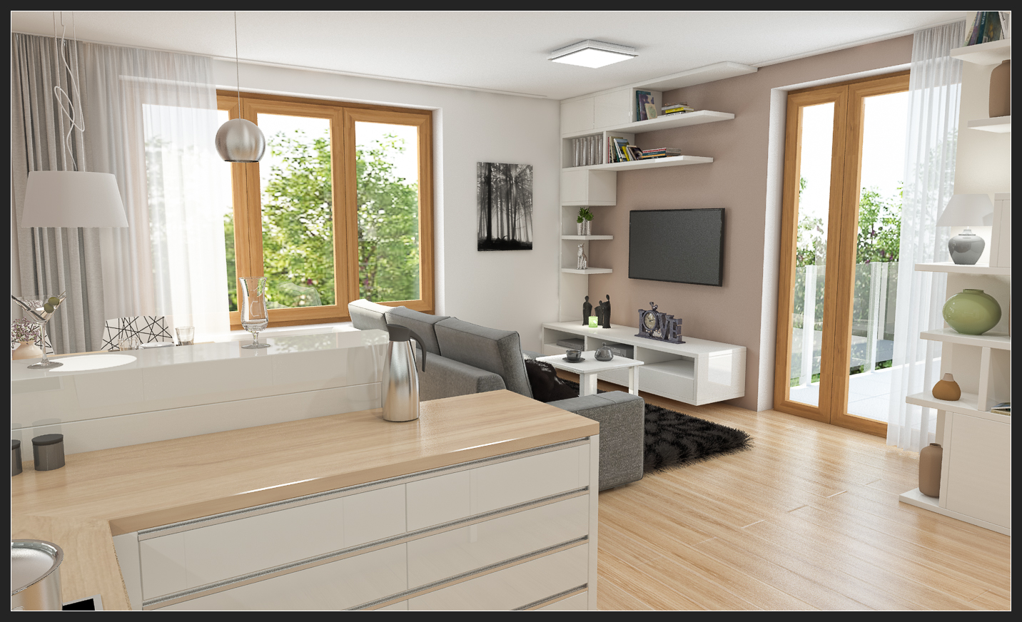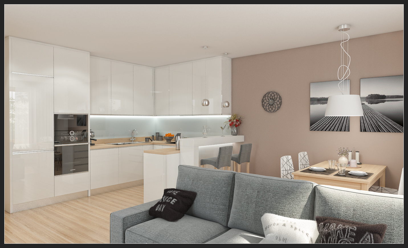 Moderní obývací pokoj s kuchyní v bílem Moderní bílá kuchyň s barovým pultem a obývací část s designovou knihovnou. Obývací pokoj je plný světla Moderní bílá kuchyň bez úchytek 04.jpg 03.jpg 02.jpg 01.jpg Autor: TIDE interiery Lokalita: Praha Datum realizace: 2017-02-02 00:00:00.000000 0