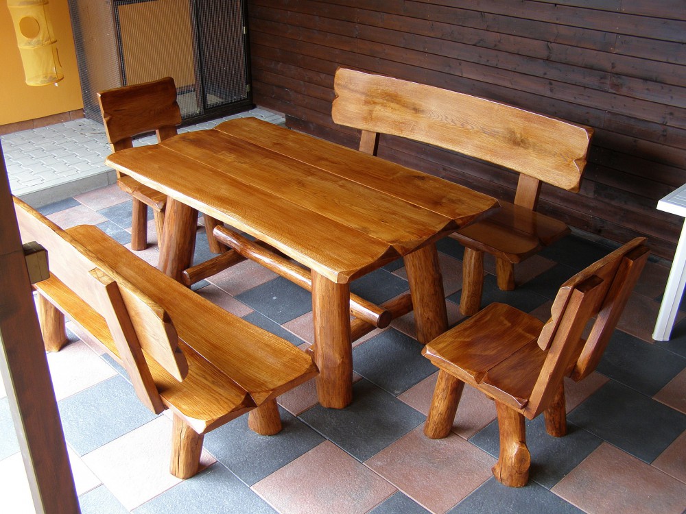 Zahradní sestava vyrobená komplet z dubového dřeva.