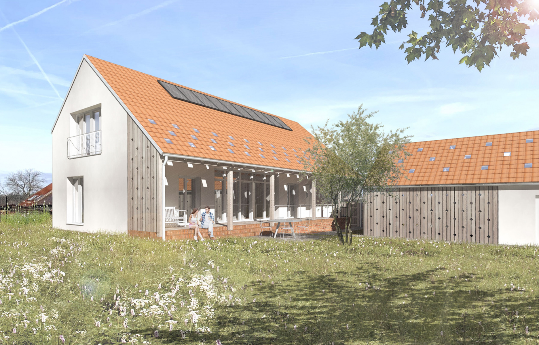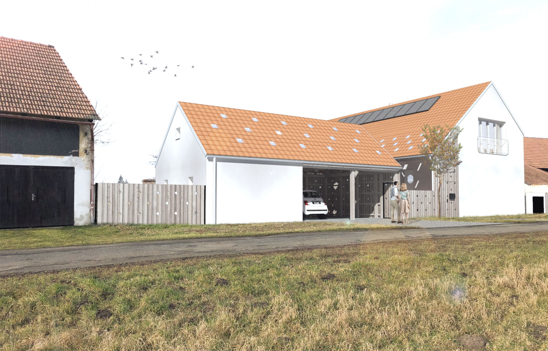 Klienti nás přizvali k návrhu pasivního domu v blízkosti Labe. Zachovali jsme tradiční venkovské tvary a výsledek posuďte sami.