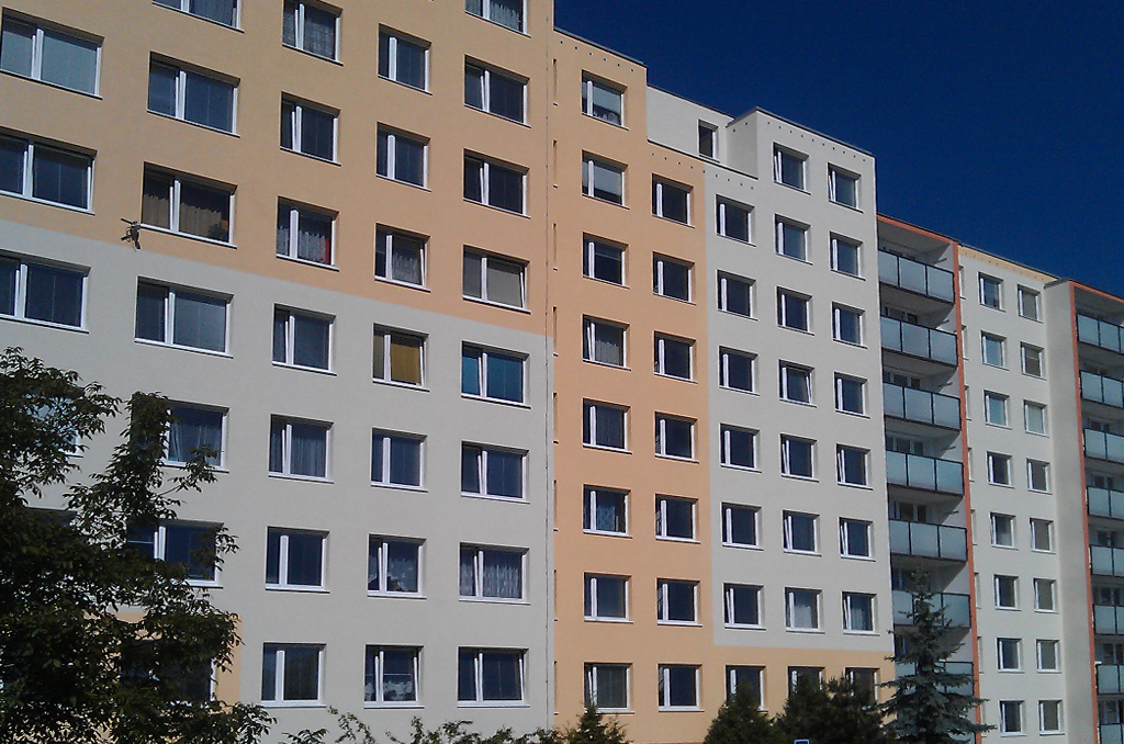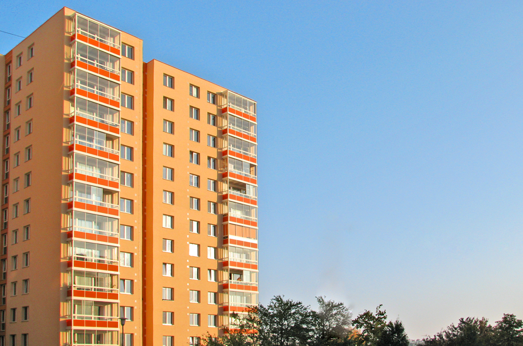 Realizace plastových oken a zasklenění balkónu v bytovém domě Brno.