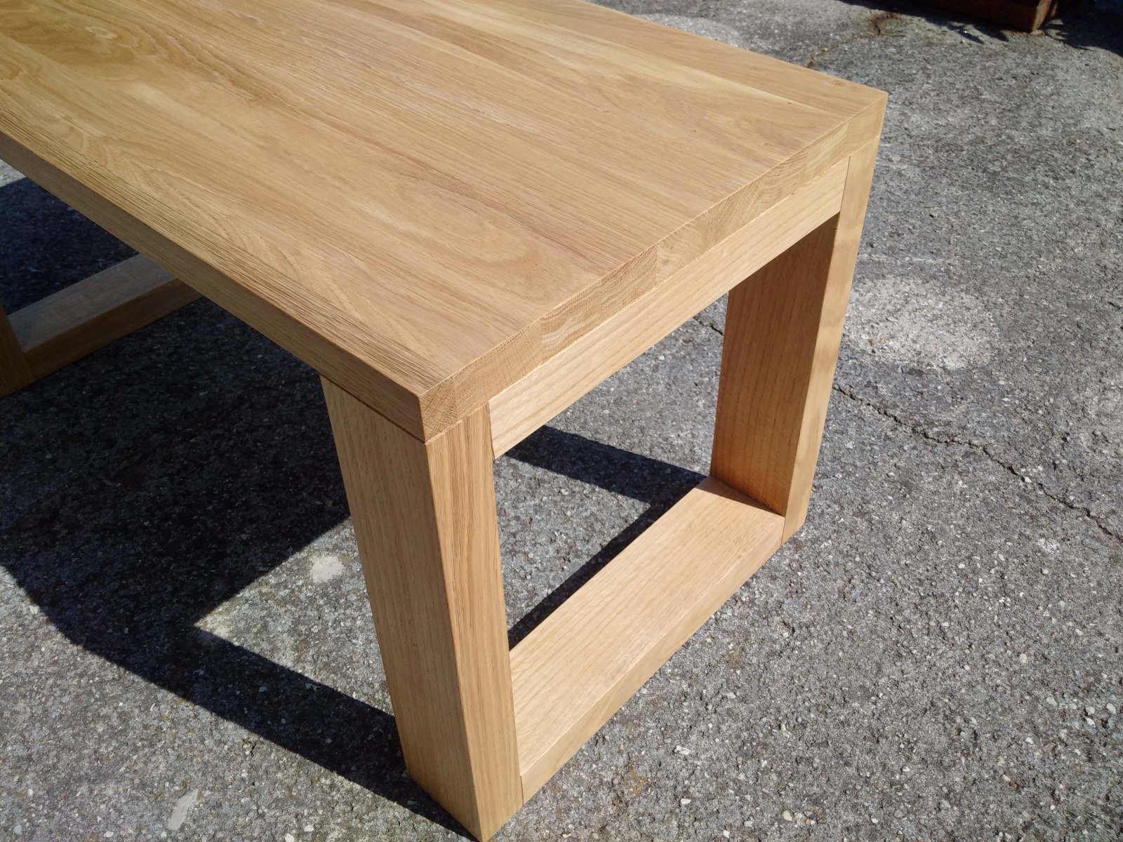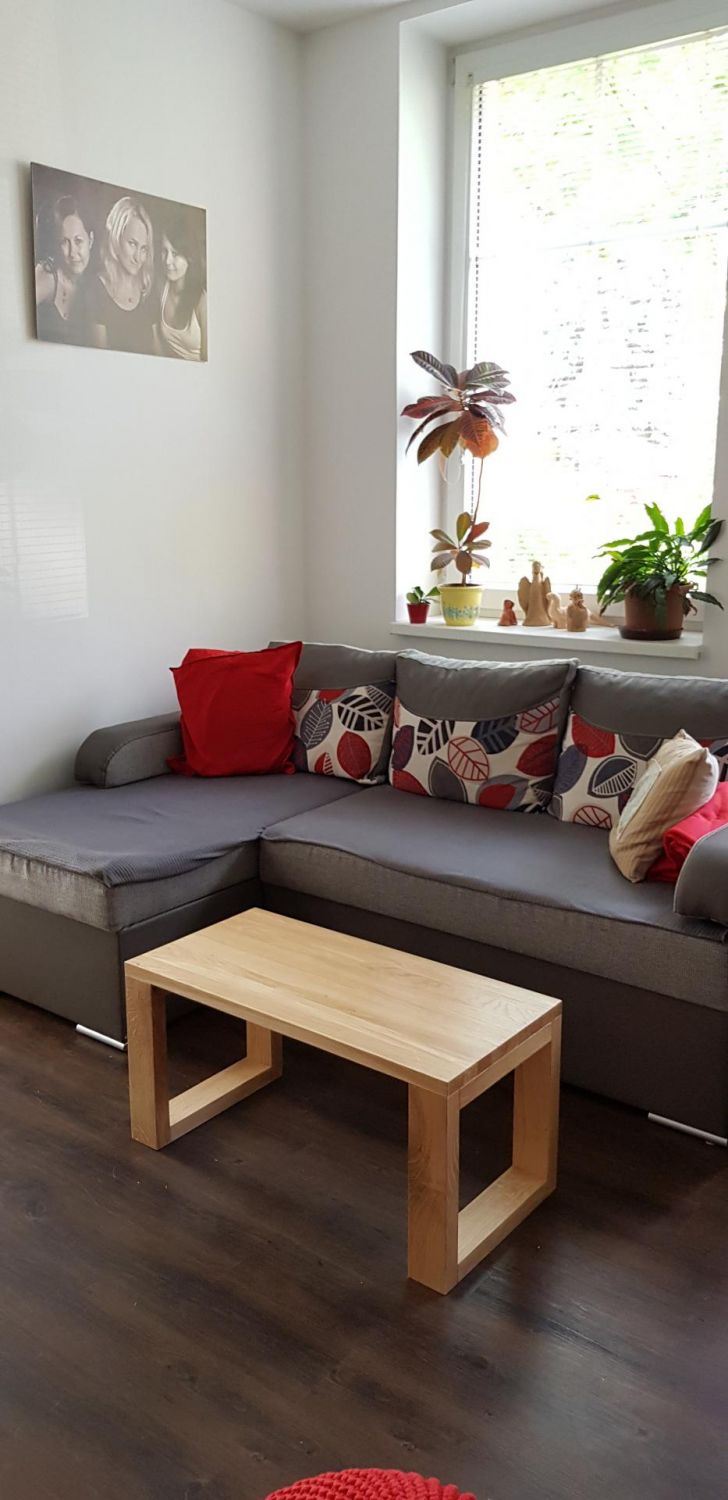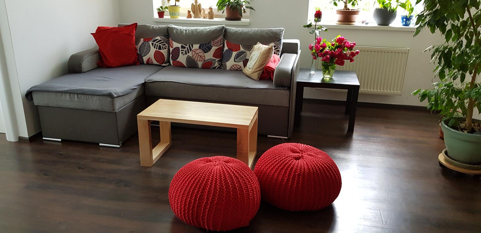 Dřevěný stolek může být použitelný také jako lavice, jelikož konstrukce je dostatečně pevná
