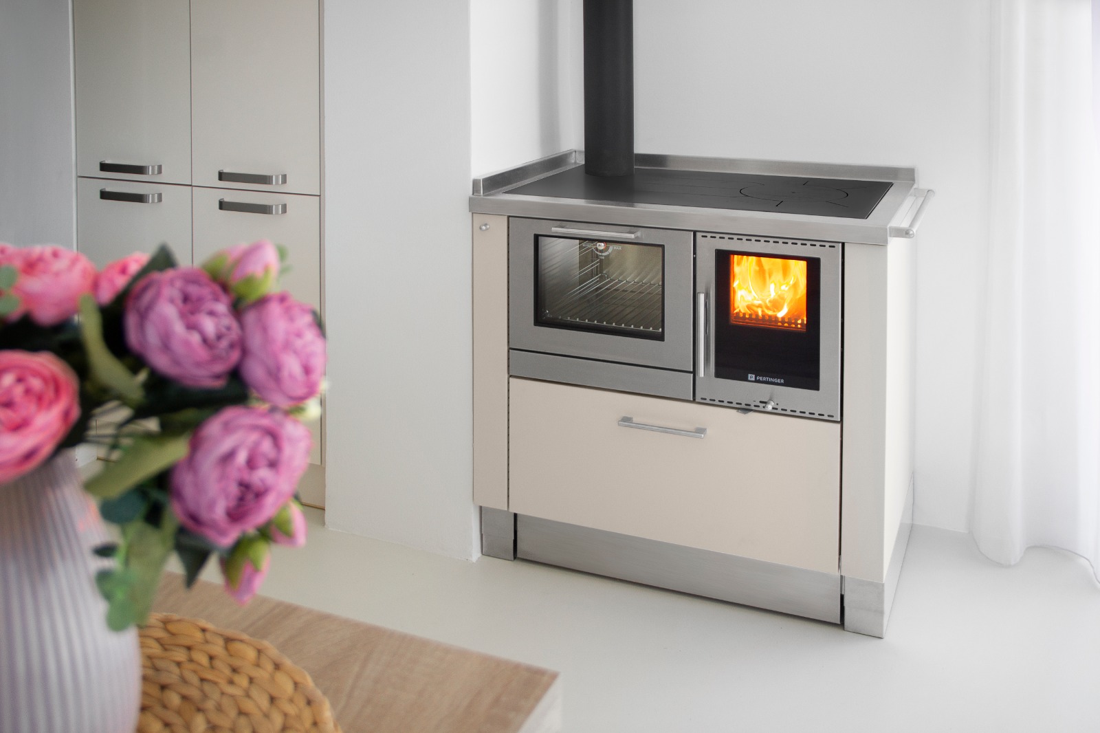Sporáky Pertinger mají velmi kvalitní zpracování. Umístění trouby a topeniště závisí na umístění komína a je variabilní. I další komponenty je možné přizpůsobit vašim požadavkům.