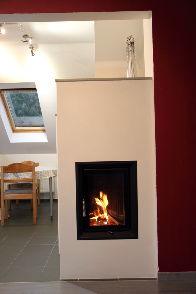 Pohled do ohně z obývacího pokoje. Foto zdroj: Jihočeské kamnářství