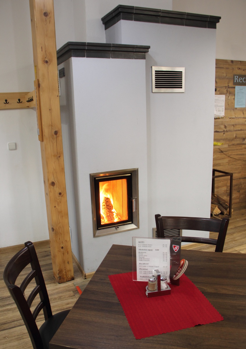 Kamna jsou jediným zdrojem vytápění v restauraci.
