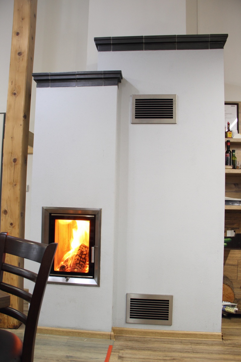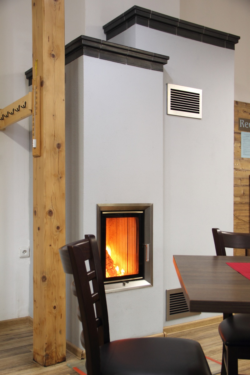 Kamna jsou jediným zdrojem vytápění v restauraci a jsou tedy denně v provozu. Pro regulaci teplého vzduchu slouží zabudované mřížky. Nerezové mřížky i nerezový rámeček vložky dodávají kamnům moderní vzhled.