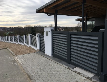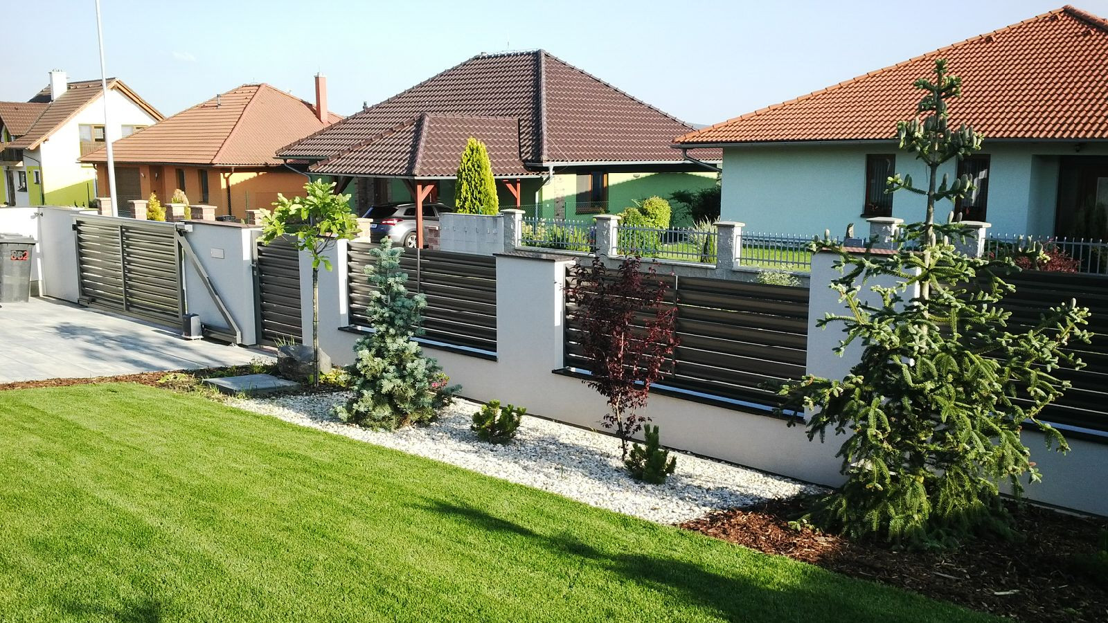 Zákazník si vybral nejpopulárnější okenicový systém NOVA v antracitovém odstínu. Celý projekt se skládal celkem ze 3 ks vjezdových dvoukřídlých brán, které byly osazeny unikátními pohony SOMFY INVISIO, které jsou skryté v rámu brány.