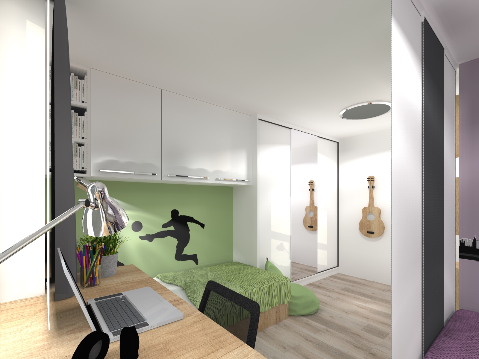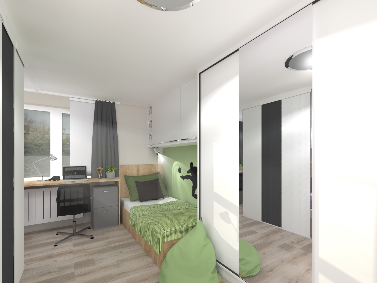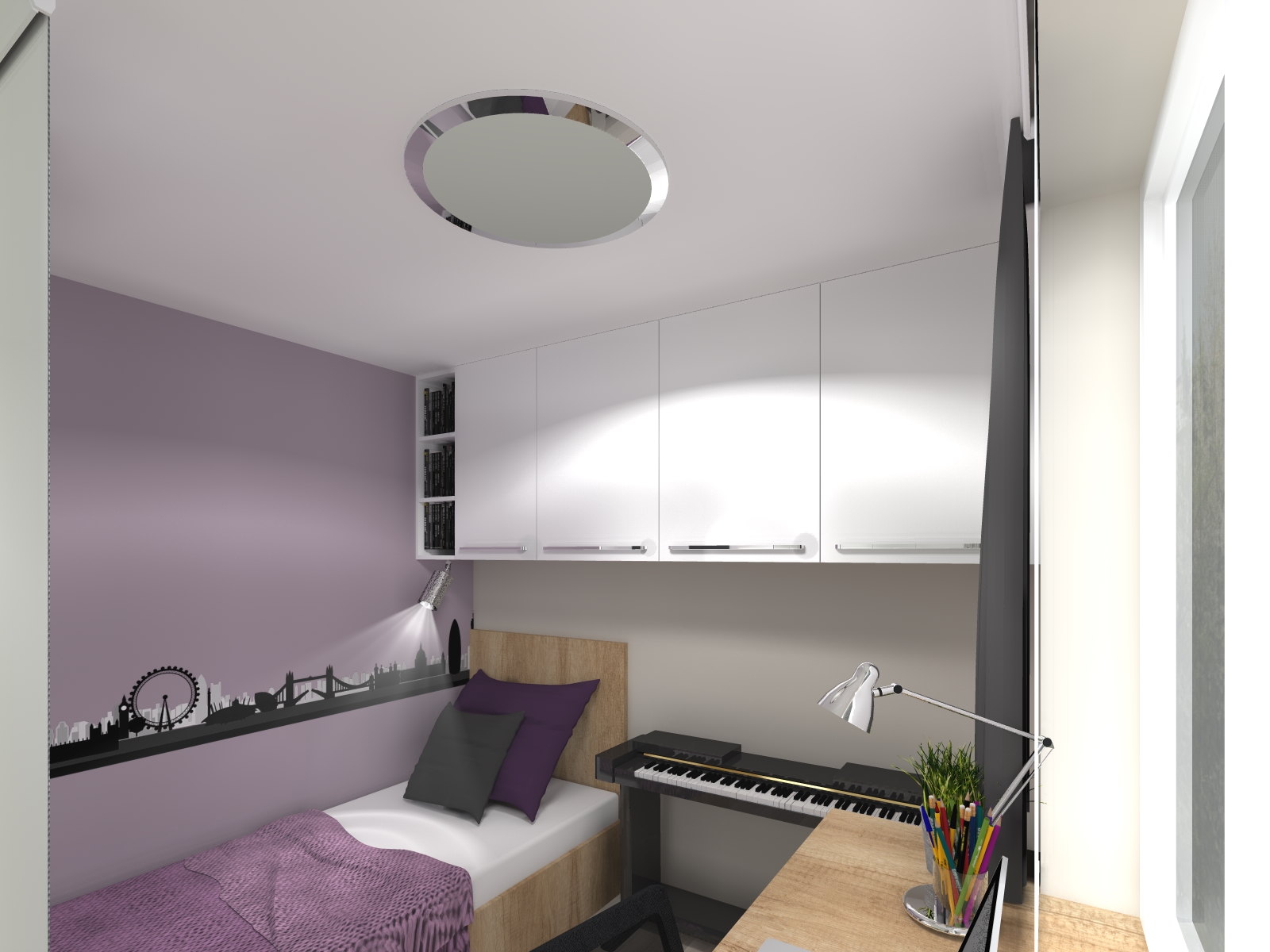 Jedním z hlavních cílů rekonstrukce interiéru tohoto bytu bylo poskytnout oddělené prostory dívce a chlapci, kteří toužili po alespoň částečném soukromí. Zároveň si oba chtěli svůj prostor přizpůsobit podle svých představ.
