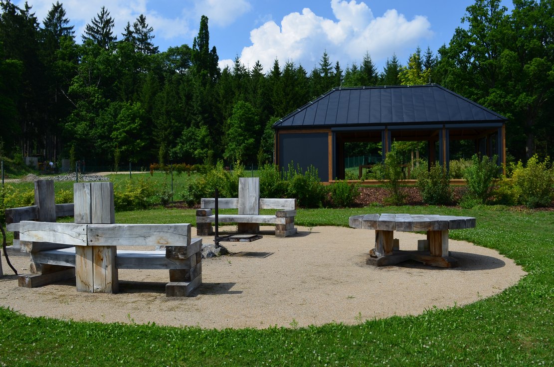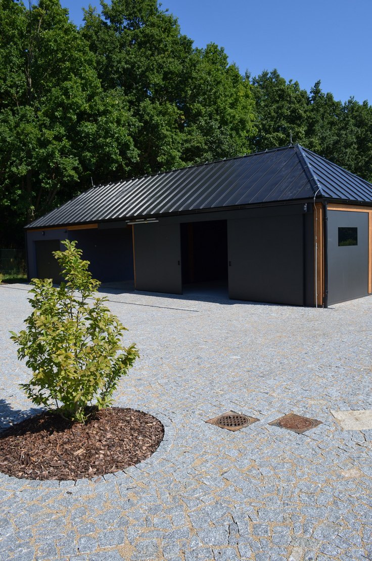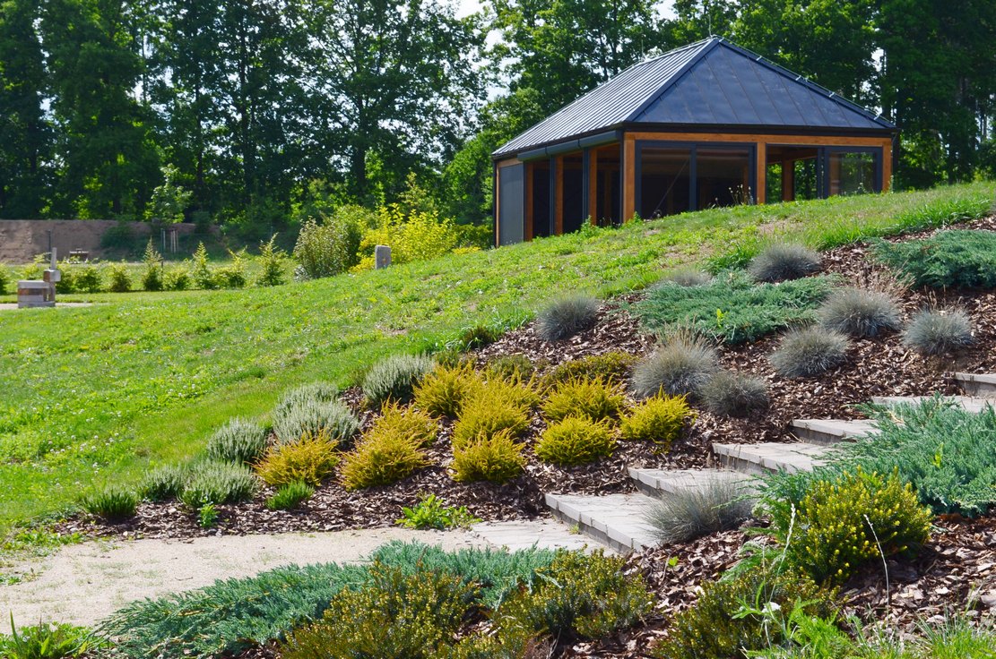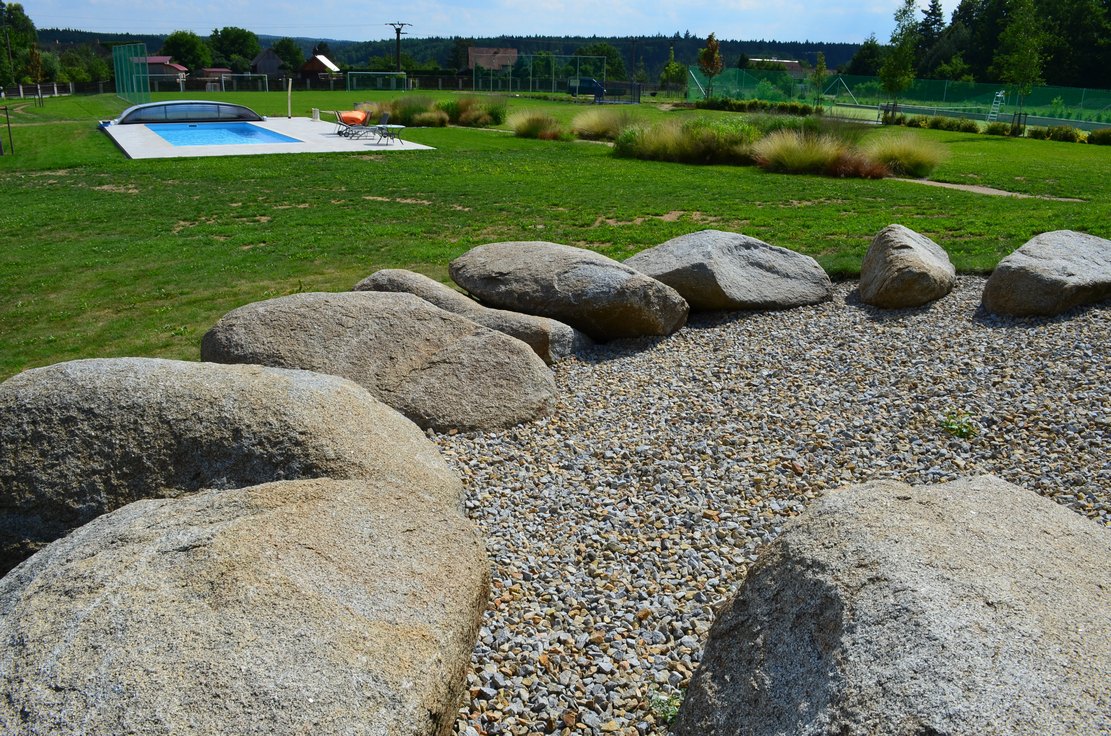 Na venkovském rodinném sídle v Jižních Čechách jsme realizovali rozlehlou zahradu, ktará se nalézá v krásné, tísíce let obydlené krajině poblíž vodní nádrže Orlík. Vysadili jsme zde vzrostlé stromy (javory, buky a duby, olše, jasany, douglasky, jedle, jabloně, hrušně a medonosnou lípu pro včelstava v sousedství), habrový živý plot nebo průvodní příjezdové stromořadí habrů uzkého vejčitého tvaru. Z okrasných keřů jmenujme tavolníky a různobarevné mochny. Dále různé druhy kakostů do stínu, polostínu i osluněná stanoviště, v létě růžově kvetoucí klasy šuškardy, červené čechravy, tmav modré šalvěje, lilie, nepety, trávníky a travní koberce. Kromě vysazení příjemné vegetace jsme se zabývali dalšími objekty, mezi něž patří: altán a parkovací stání, bazén s úpravou okolního terénu a vysazení vegetace, hřiště s travnatým povrchem, mlatové a dlážděné cesty, schody, kamenné plochy a solitérní kameny, venkovní sezení a masivní zahradní nábytek