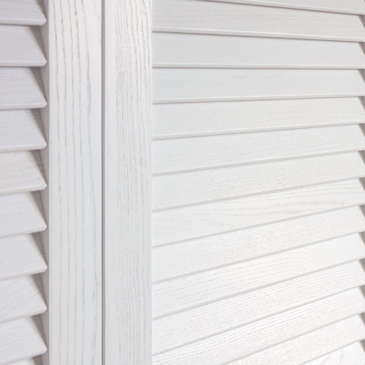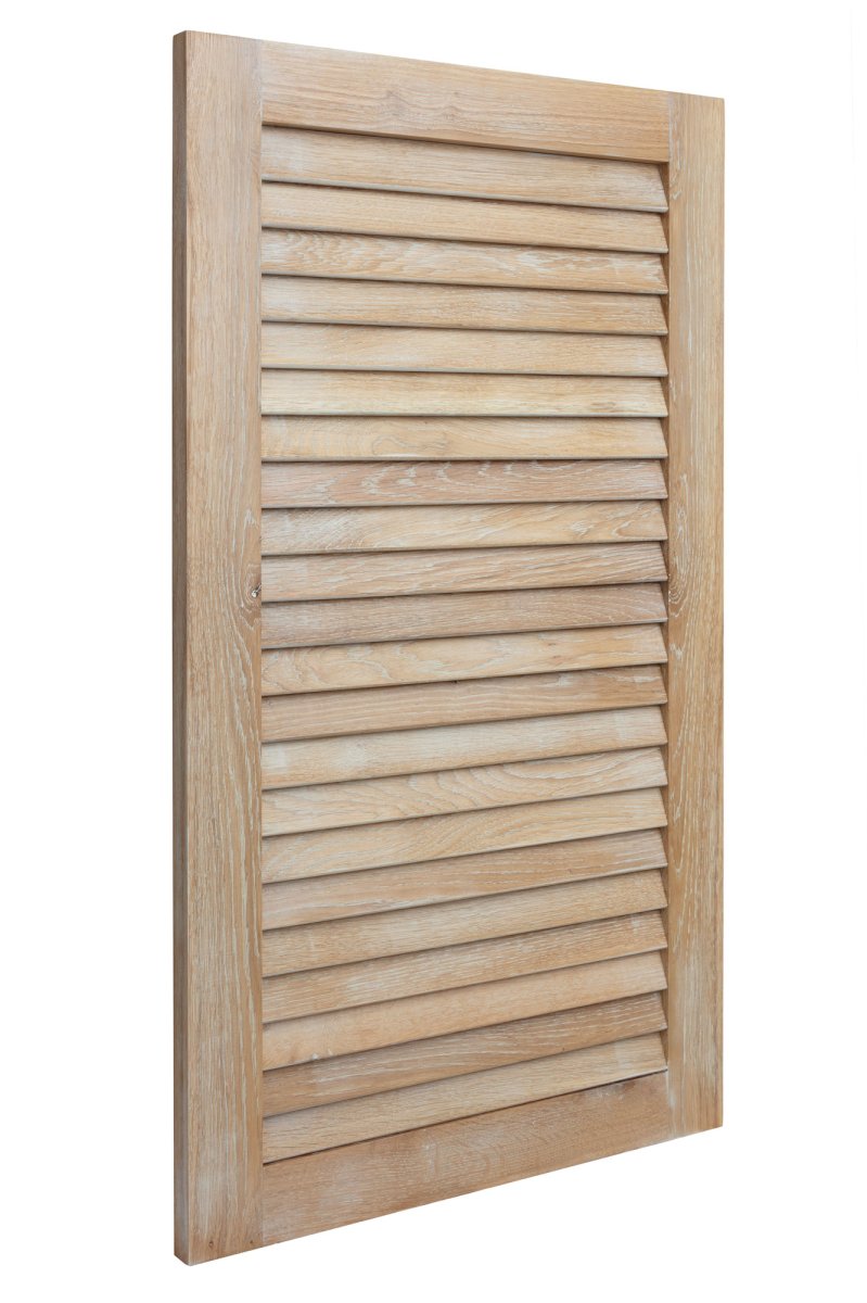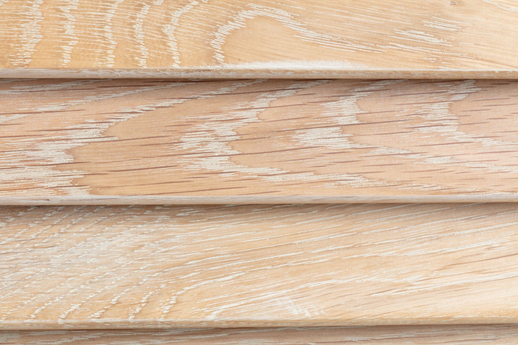 Lamelová dvířka z běleného dubového dřeva ošetřené tvrdým voskovým olejem.