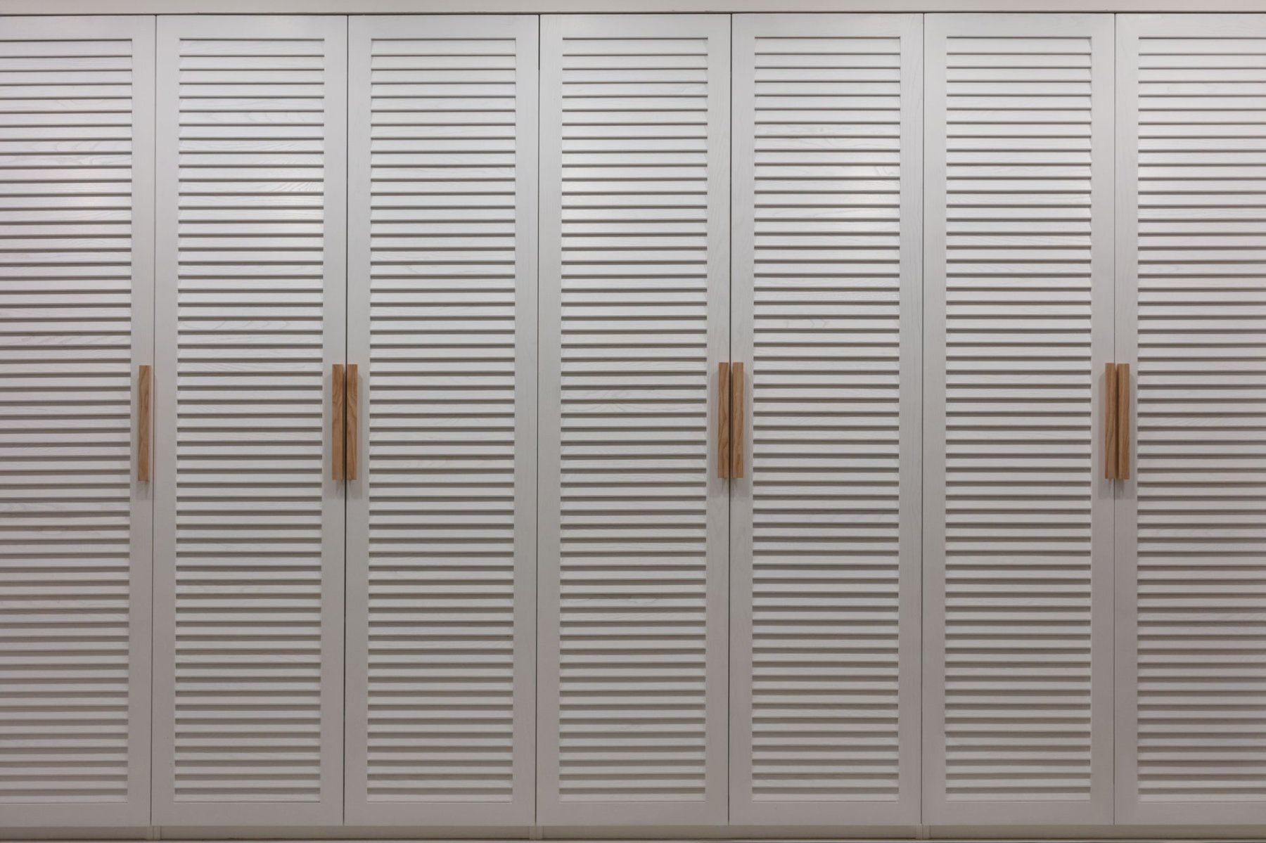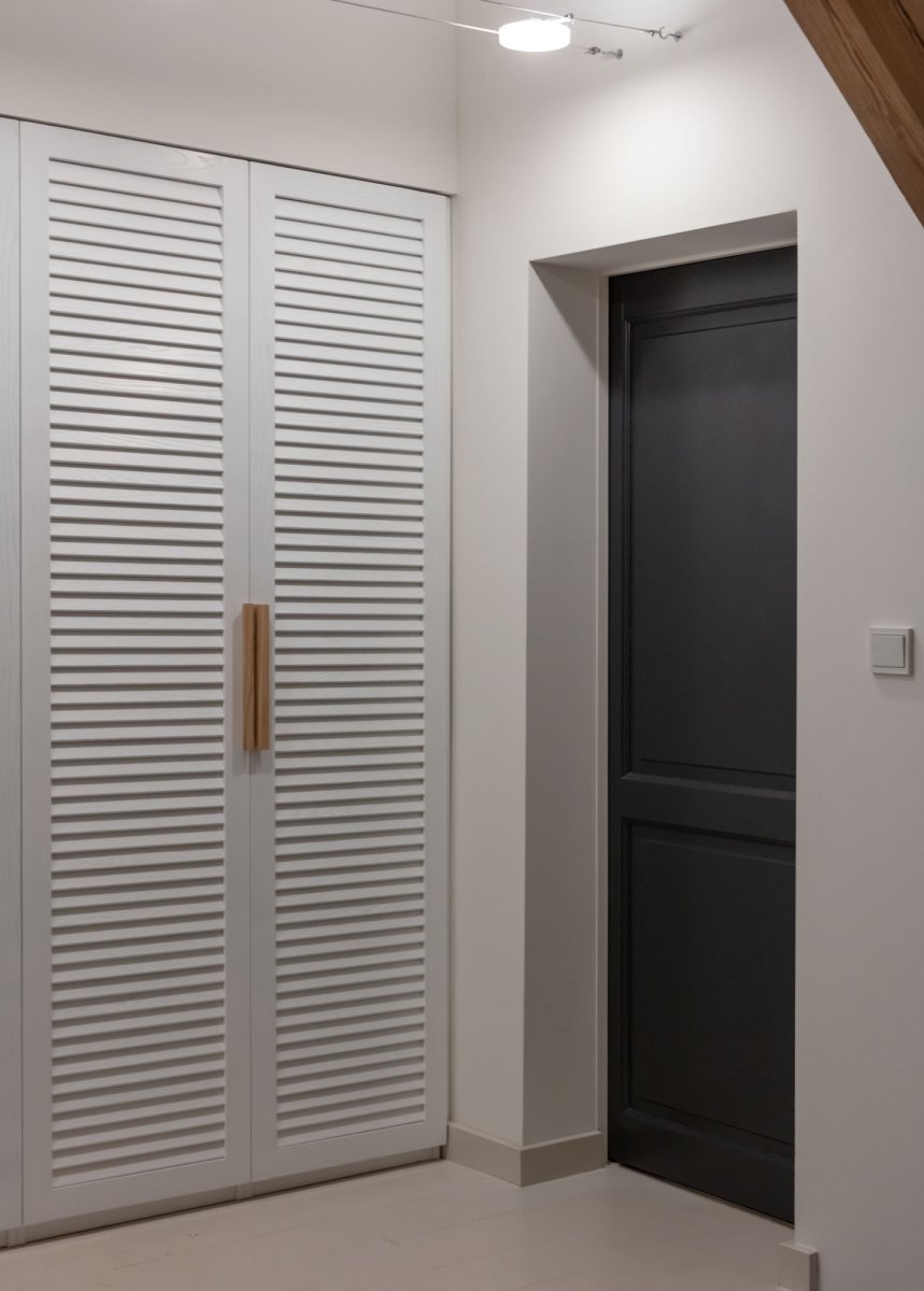 Lamelová dvířka na míru z tvrdého dřeva. Výhodou lamelových dveří je trvalé odvětrávání prostoru, proto jsou ideální volbou k šatní skříni, předsíňové stěně, zakrytí pračky apod. . Pro zachování přírodního vzhledu ošetřujeme dřevo tvrdým voskovým olejem, případně barvou jakou si vyberete dle vzorníku RAL.