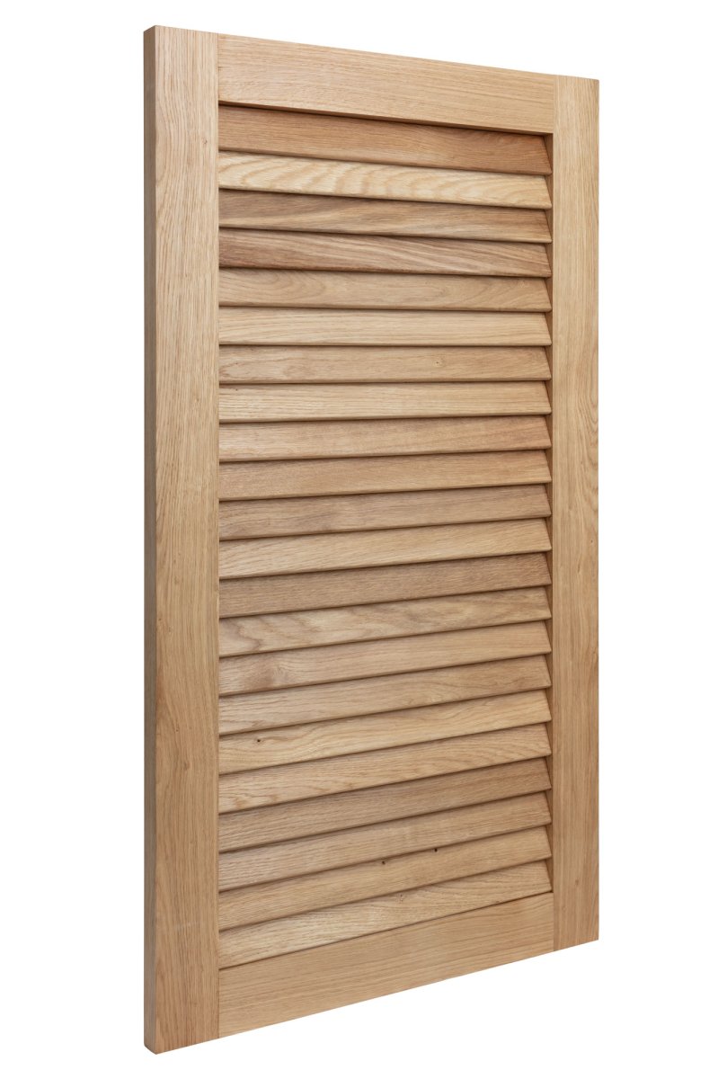 Lamelová dvířka z dubového dřeva ošetřené tvrdým voskovým olejem.