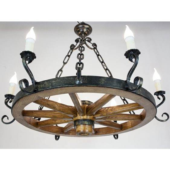 Rustikální svítidlo v podobě loukoťového kola/ průměr 70 cm\n zdroj: www.osvetleni.com